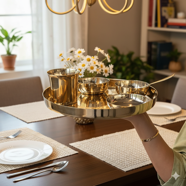 Enhance your dining experience with our comprehensive Kansa utensils set, meticulously crafted to meet your everyday needs. This set includes: